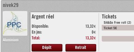 Mon défi je le rappel: monter une bankroll à 100€ en partant de 10€.